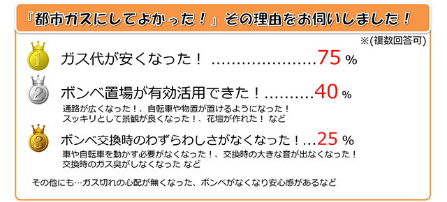 以前から都市ガスには興味があったが連絡するには至りませんでした。この度ライフスタイルの変化に伴い、改めて都市ガスを検討することにしました。ガス料金のメリットだけでなく電気とガスをセットにすることでさらなる家計の見直しに繋がり大変満足しております。