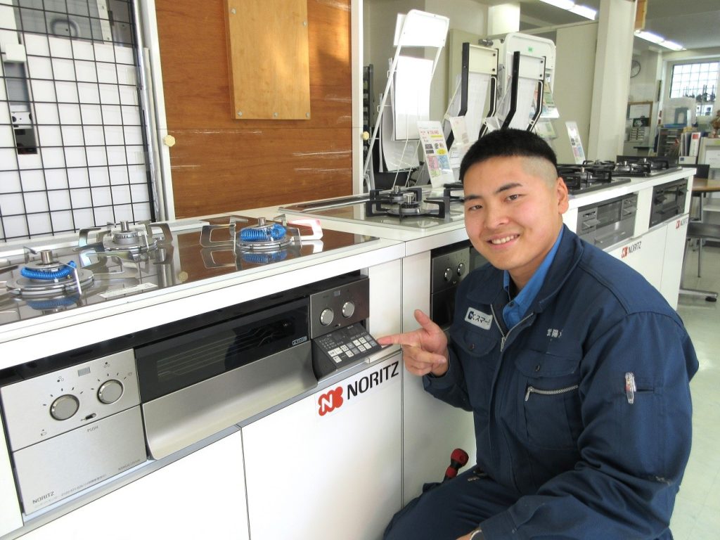 仕事内容は主にガスの閉開栓やガス機器の点検、ガス機器等の販売提案を行っております。開栓では、お客さまに対してガス機器の安全な使い方や注意事項をお伝えしております。ガス機器の提案では、お客さまに寄り添った提案を心掛けております。